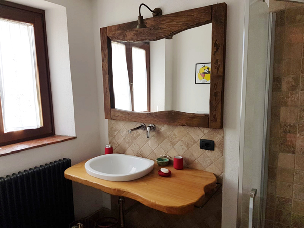 The ground floor has Florentine terracotta flooring, including a kitchen area furnished in art using recycled materials. The kitchen has new appliances, entering into open space living area with a typical wood stove, TV and Wi-Fi connection.